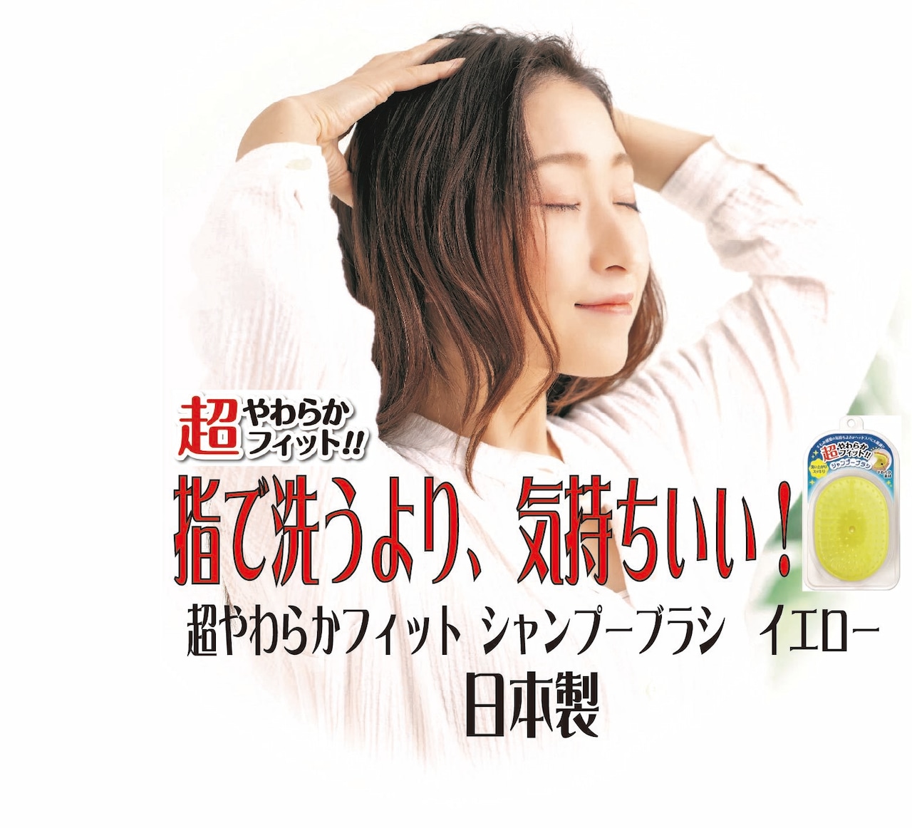 ★指で洗うより、気持ちいい★ 超やわらかフィット シャンプーブラシ イエロー(日本製)